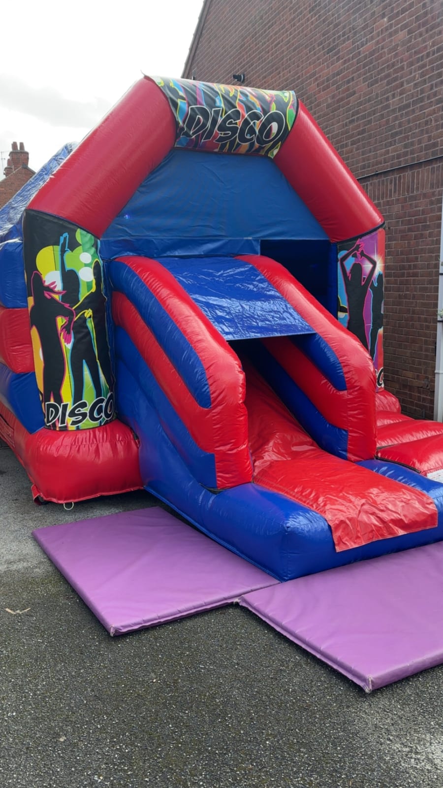 Reserve the Disco art slide castle 17x12x9.5 for your next event. We cover Nottingham, Derby, Mansfield and surrounding areas. Send a booking request or call for availability and a tailored quote. Make your party unforgettable with a disco bounce and slide! đđĒŠ