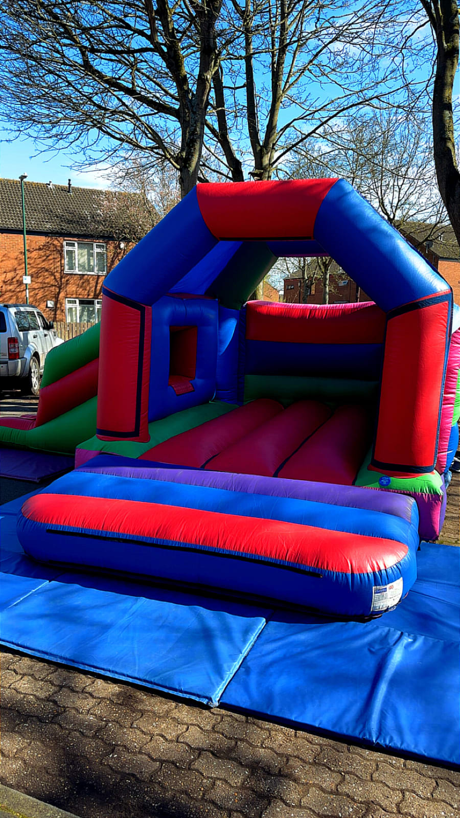 Our multicoloured slide combi castle is very popular and gets booked up quickly, especially on weekends and during summer.