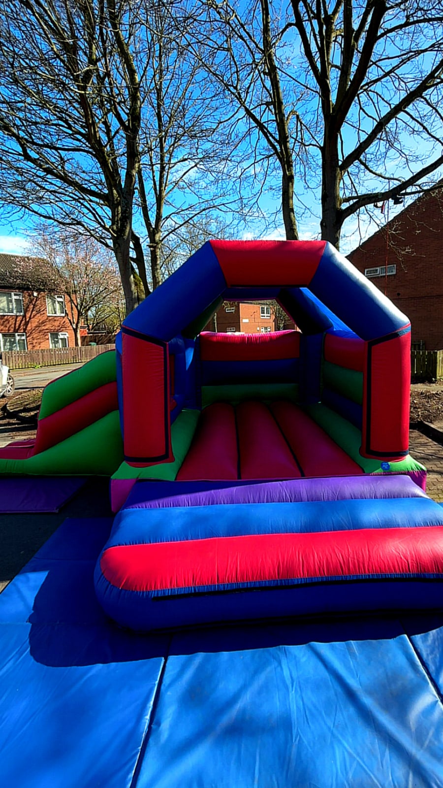 This castle features a bold multicoloured theme that stands out at any event. Whether you're hosting a birthday party, school event, or garden celebration, it instantly becomes the centre of attention.