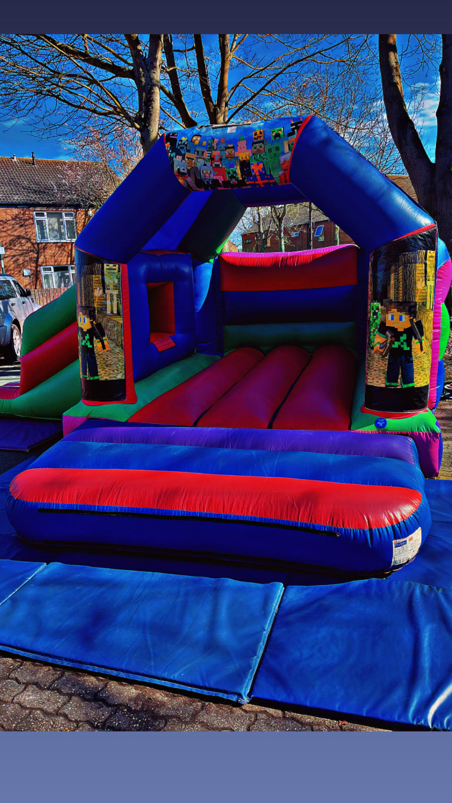 At Nottingham Bouncy Castle Hire, we supply clean, fully insured inflatables with reliable delivery, professional setup and safe collection. Our Minecraft combi castle is ideal for both indoor venues and outdoor garden parties.