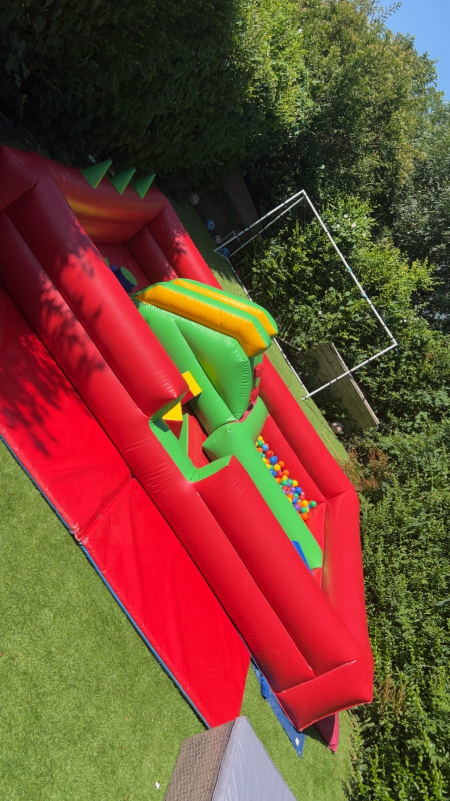 Rent a vibrant 15x12 red Inflatable softplay center with ballpool and slide for your next event. This ready-to-go softplay unit includes softplay shapes and a built in ballpool and slide. Ideal for toddlers and young children. Safe, clean, and built for hours of active fun for bouncy castle hire in Nottingham π